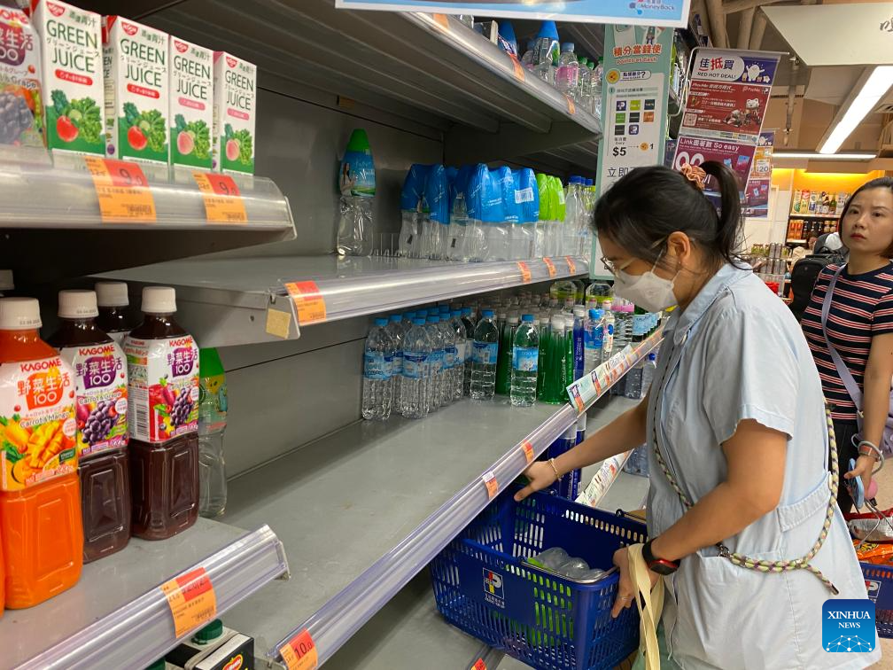 People shop at a supermarket in Hong Kong, south China, Sept. 22, 2025. The Emergency Monitoring and Support Center under the Security Bureau of China's Hong Kong Special Administrative Region (HKSAR) government was activated on Monday morning in preparation for typhoon Ragasa. (Xinhua/Zhao Manjun)