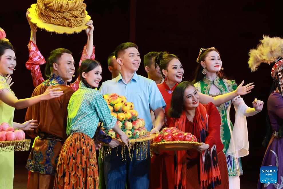 A gala entitled "Beautiful Xinjiang" is held to mark the 70th founding anniversary of Xinjiang Uygur Autonomous Region in Urumqi, the regional capital, Sept. 24, 2025. (Xinhua/Ding Lin)