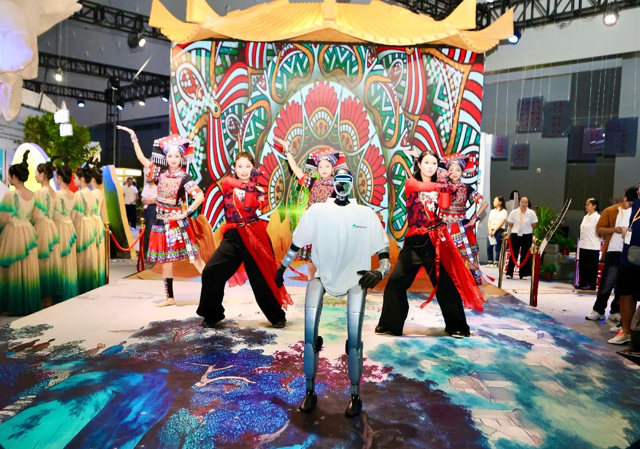 A humanoid robot dances at the 22nd China-ASEAN Expo Tourism Exhibition, Sept. 19, 2025. (Photo/Li Kai)