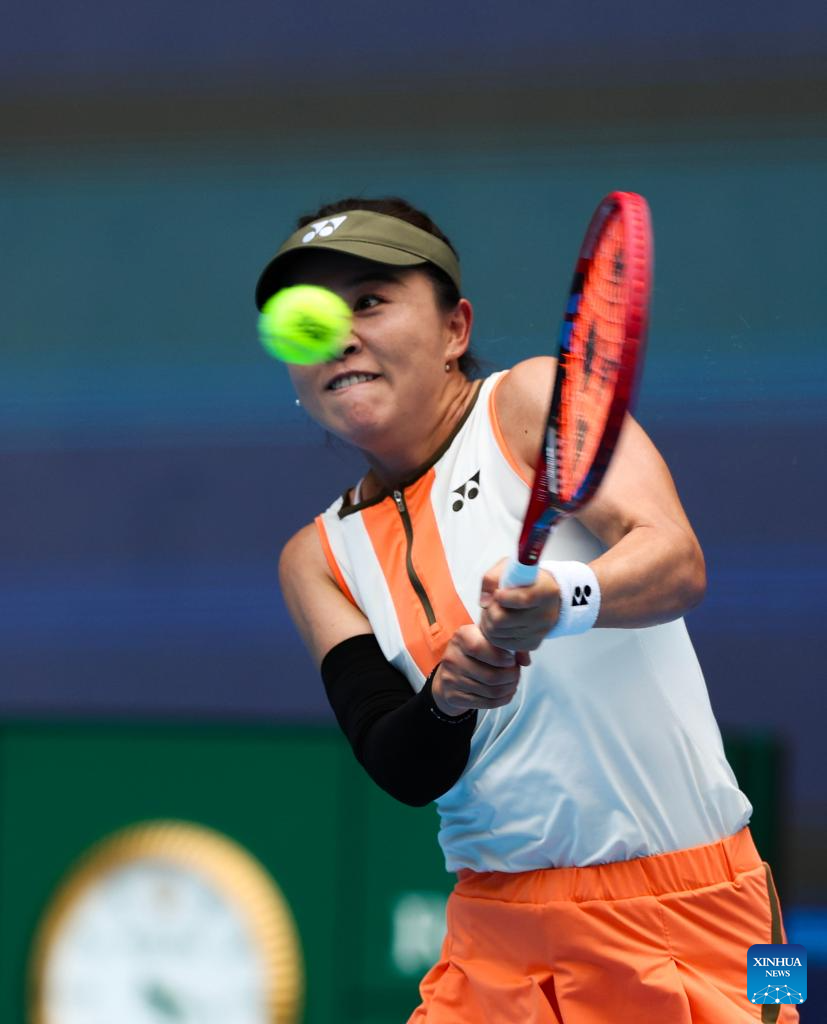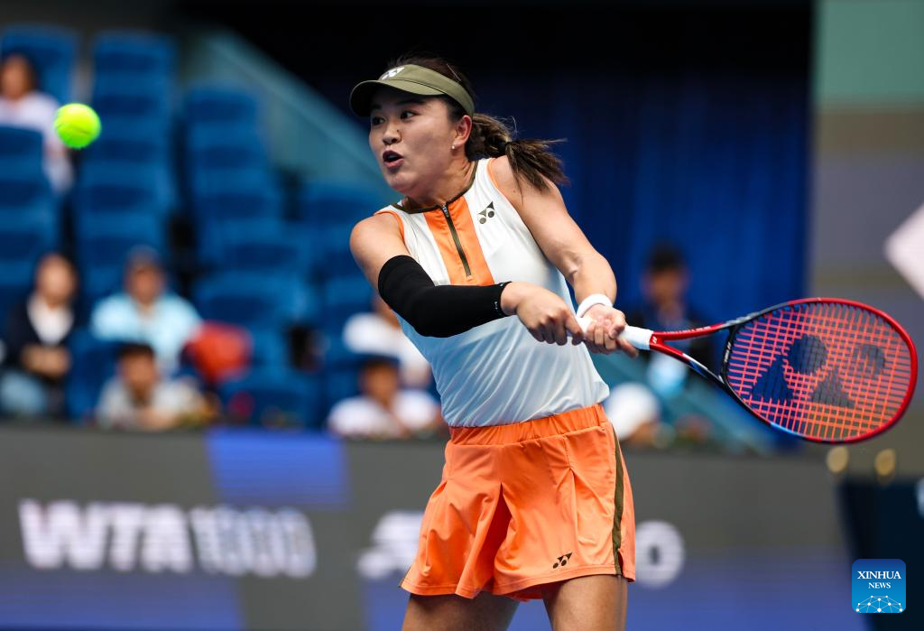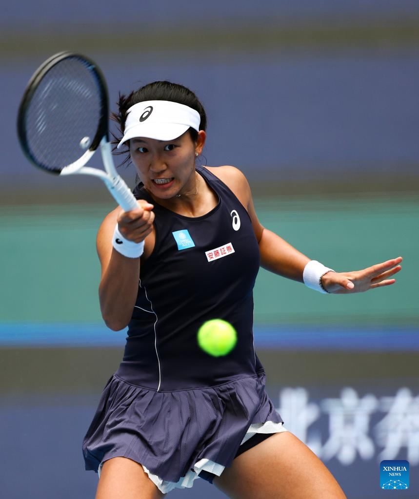 Zhu Lin hits a return during the women's singles first round match between Zhu Lin of China and Uchijima Moyuka of Japan at 2025 China Open tennis tournament in Beijing, China, Sept. 25, 2025. (Xinhua/Du Xinyi)