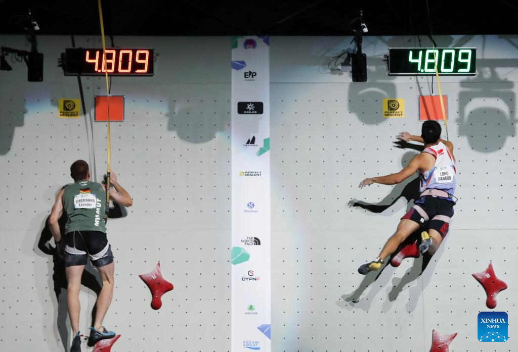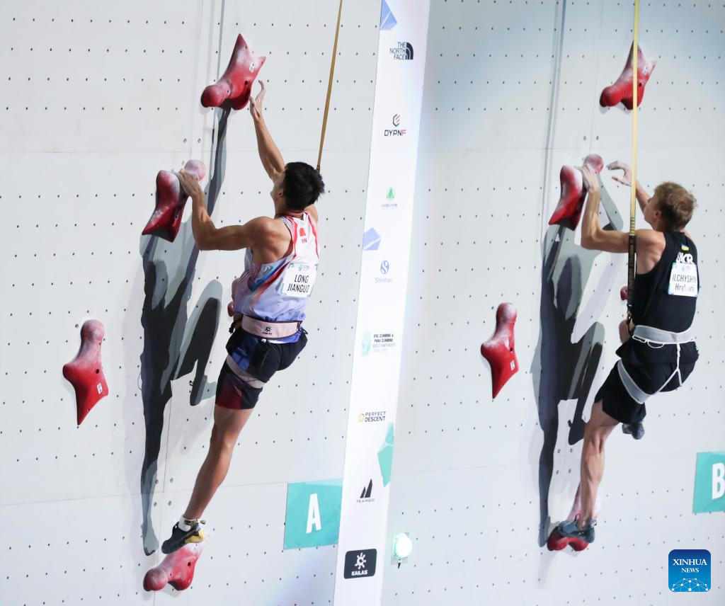 SEOUL, Sept. 25 (Xinhua) -- China's Long Jianguo captured his first world title in men's speed climbing here on Thursday at the 2025 IFSC Climbing World Championships, marking the first time in 13 years that a Chinese male speed climber has won a World Championships gold.