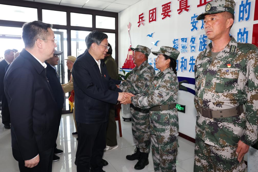 Wang Huning, a member of the Standing Committee of the Political Bureau of the Communist Party of China Central Committee, chairman of the National Committee of the Chinese People's Political Consultative Conference, and head of the central delegation, led a group of delegation members to the XPCC-administered cities of Tiemenguan and Beitun.