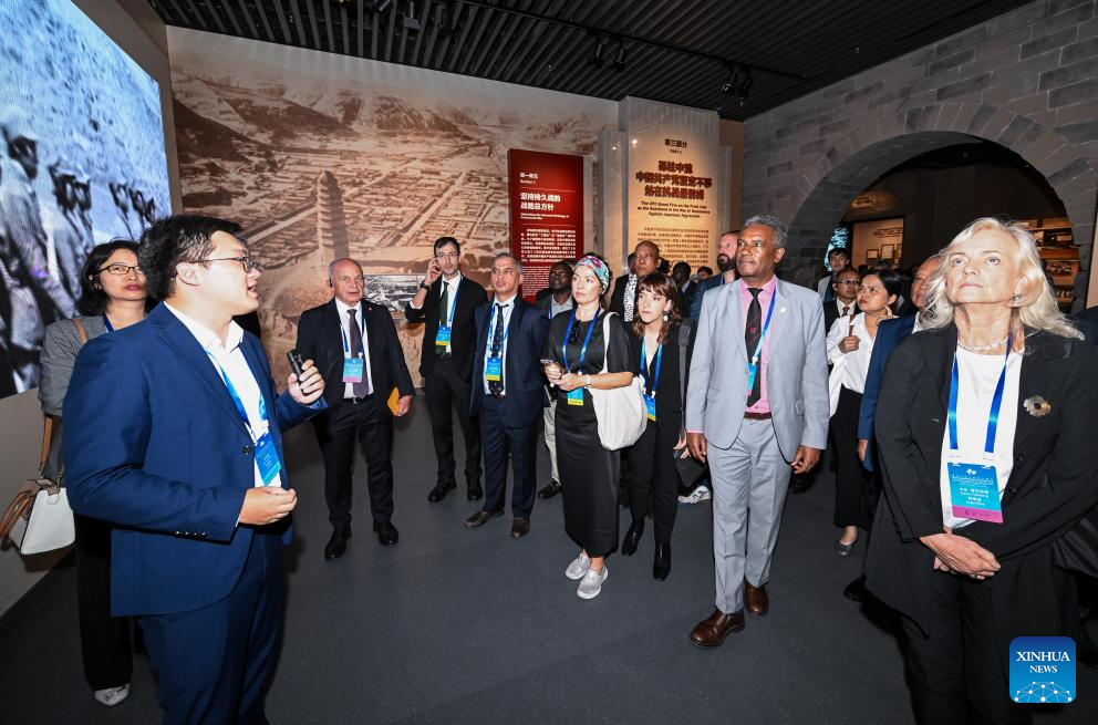 Delegates visit the Museum of the Communist Party of China in Beijing, capital of China, Sept. 26, 2025. Delegates to the Peace Conference in Commemoration of the 80th Anniversary of the Victory of the Chinese People's War of Resistance Against Japanese Aggression and the World Anti-Fascist War visited the Museum of the Communist Party of China and the Museum of the War of Chinese People's Resistance Against Japanese Aggression here on Friday. They also attended the Peace Gathering in Commemoration of the 80th Anniversary of the Victory of the Chinese People's War of Resistance Against Japanese Aggression and the World Anti-Fascist War on Friday. (Xinhua/Chen Yehua)