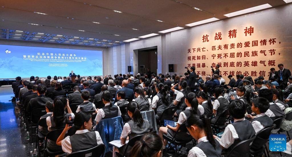 Delegates attend the Peace Gathering in Commemoration of the 80th Anniversary of the Victory of the Chinese People's War of Resistance Against Japanese Aggression and the World Anti-Fascist War in Beijing, capital of China, Sept. 26, 2025. Delegates to the Peace Conference in Commemoration of the 80th Anniversary of the Victory of the Chinese People's War of Resistance Against Japanese Aggression and the World Anti-Fascist War visited the Museum of the Communist Party of China and the Museum of the War of Chinese People's Resistance Against Japanese Aggression here on Friday. They also attended the Peace Gathering in Commemoration of the 80th Anniversary of the Victory of the Chinese People's War of Resistance Against Japanese Aggression and the World Anti-Fascist War on Friday. (Xinhua/Chen Yehua)