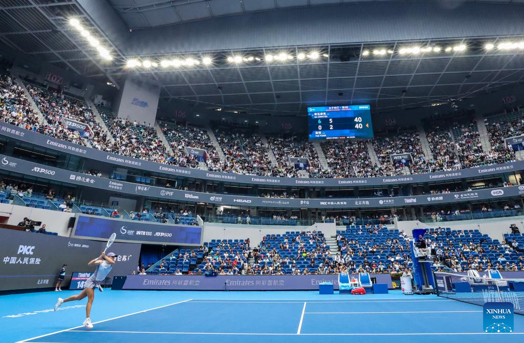 BEIJING, Sept. 27 (Xinhua) -- World No.2 Iga Swiatek of Poland kicked off her China Open campaign in style on Saturday, defeating home player Yuan Yue 6-0, 6-3 in the women's singles second round to extend her unbeaten record at the National Tennis Center.