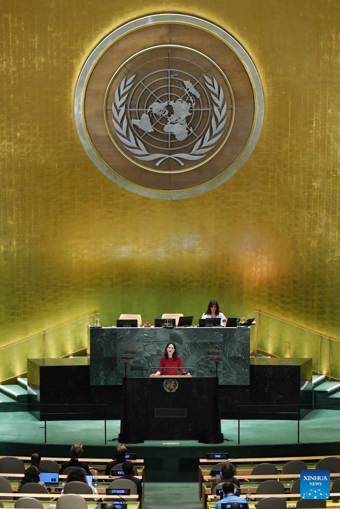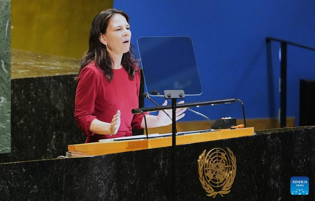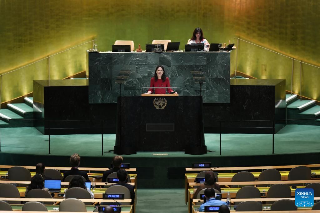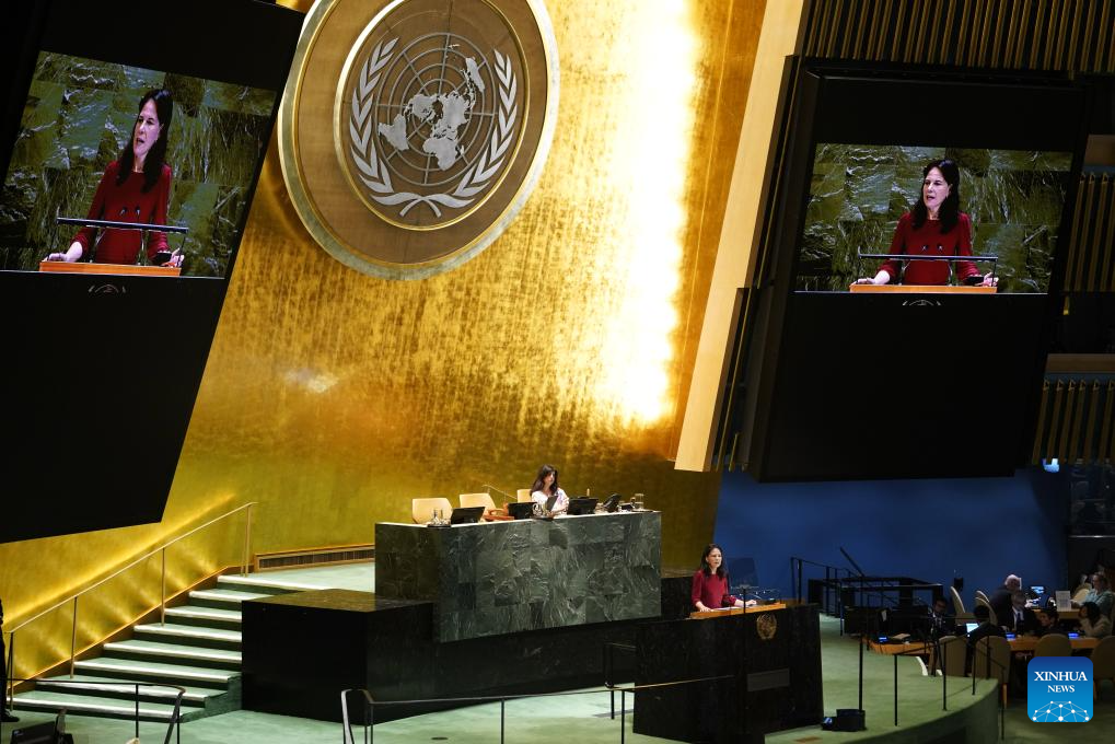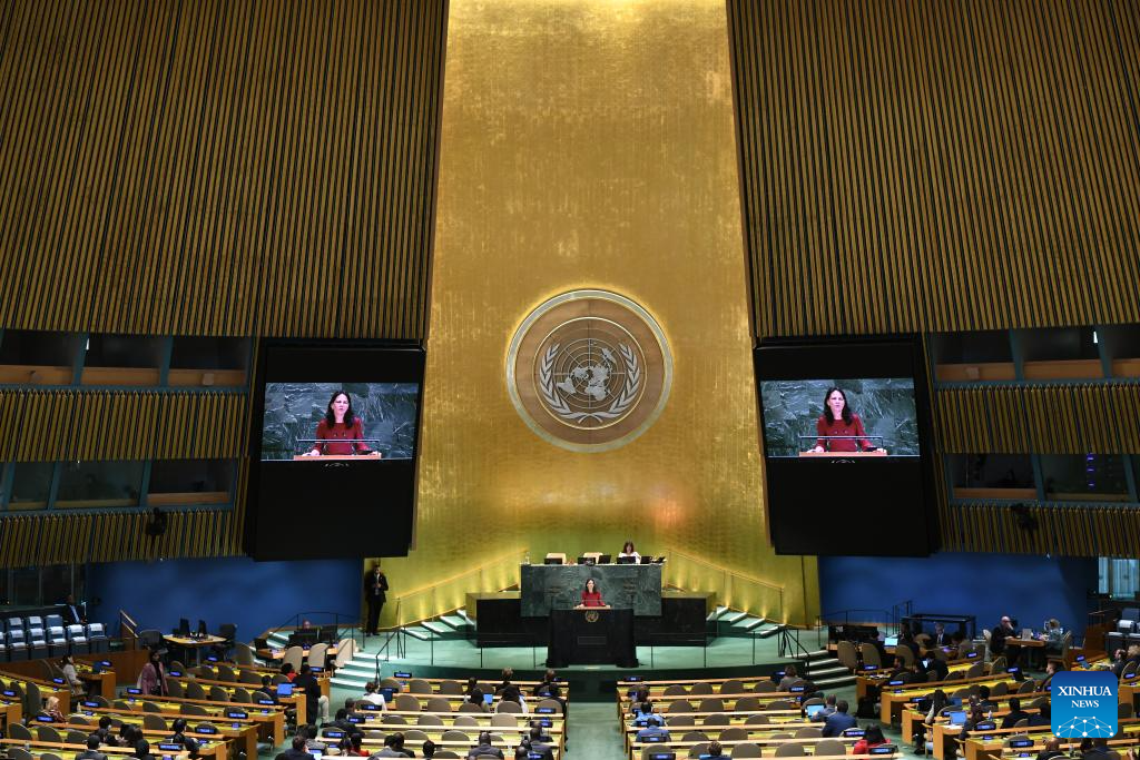 Annalena Baerbock, president of the 80th session of the United Nations General Assembly, delivers closing remarks during the General Debate of the 80th session of the United Nations General Assembly (UNGA) at the UN headquarters in New York, on Sept. 29, 2025. The General Debate of the 80th session of the UN General Assembly concluded on Monday. (Xinhua/Wu Xiaoling)