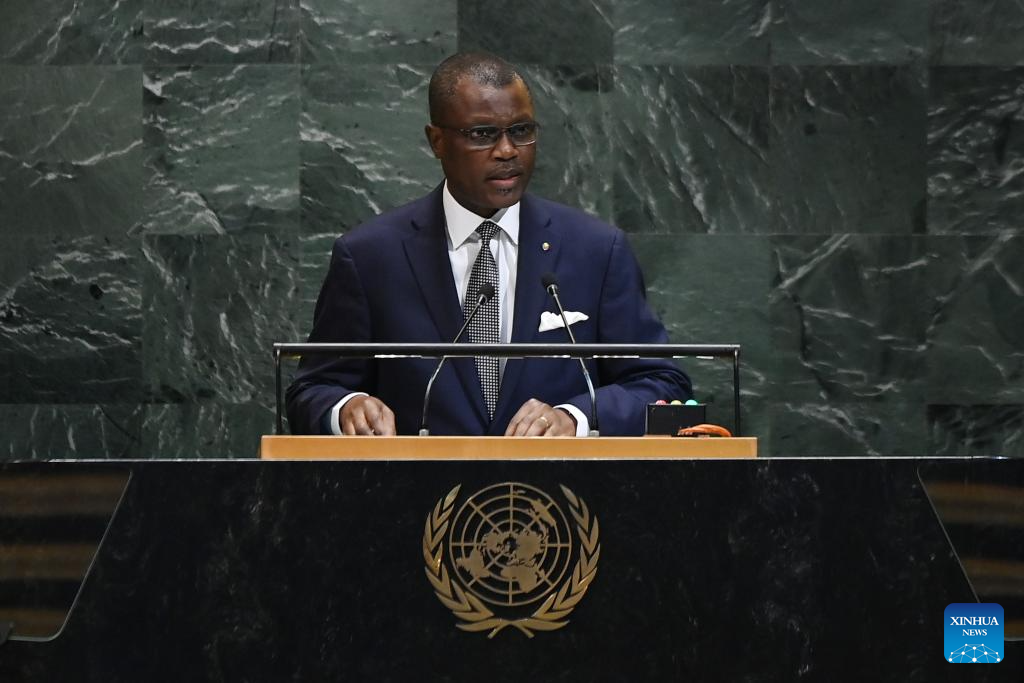 Beninese Permanent Representative to the United Nations Marc Hermanne Gninadoou Araba delivers a speech during the General Debate of the 80th session of the United Nations General Assembly (UNGA) at the UN headquarters in New York, on Sept. 29, 2025. (Xinhua/Li Rui)