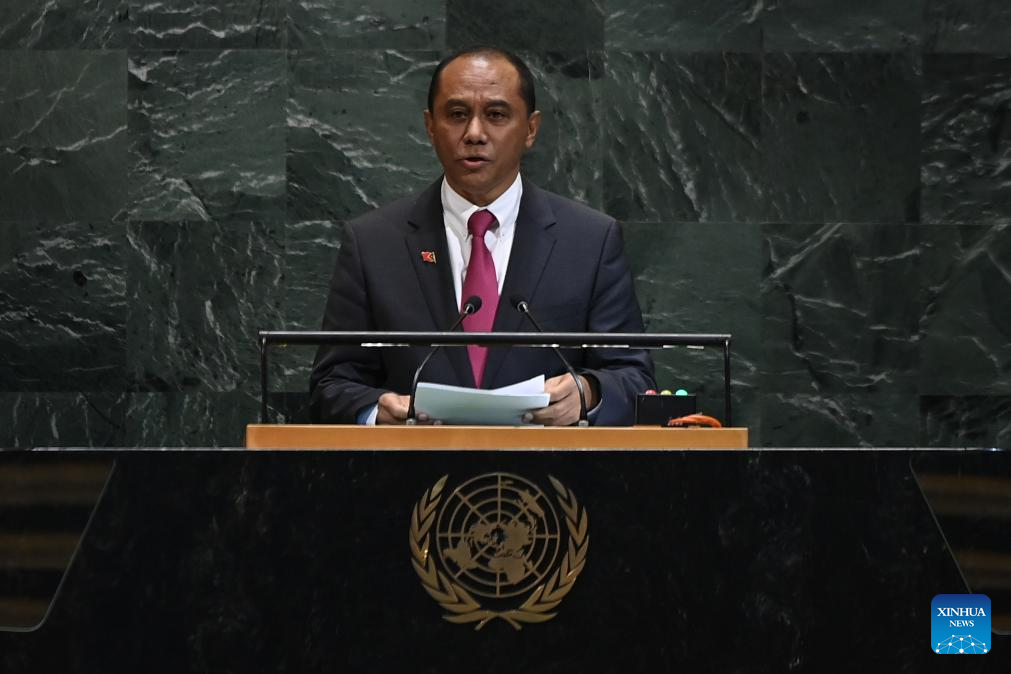 Dionisio Da Costa Babo Soares, Timor-Leste's Permanent Representative to the United Nations, delivers a speech during the General Debate of the 80th session of the United Nations General Assembly (UNGA) at the UN headquarters in New York, on Sept. 29, 2025. (Xinhua/Li Rui)