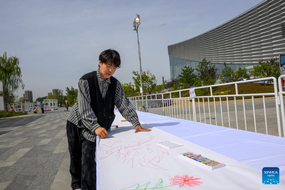 This photo taken on Oct. 1, 2025 shows a scene at the 2025 Grand Canal Public Art Season in Beijing, capital of China. The 2025 Grand Canal Public Art Season kicked off here on Wednesday, enabling the public to experience the charm of art through interactive experiences. (Xinhua/Jin Liangkuai)