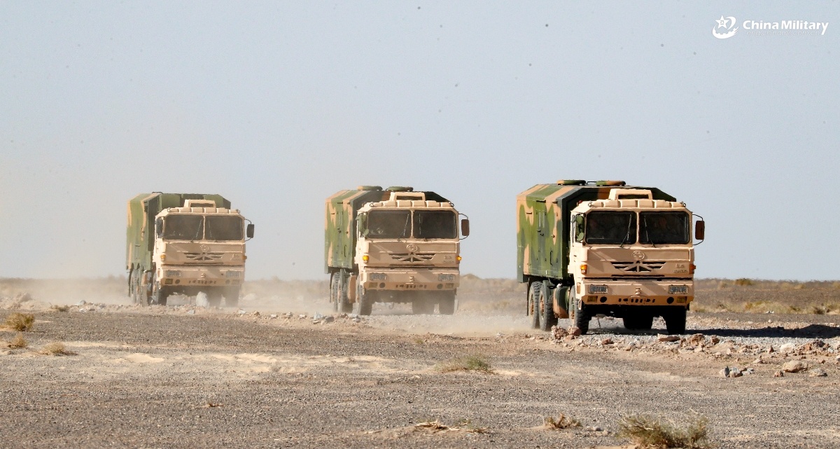 Vehicles attached to a unit under the Chinese PLA Air Force maneuver to the designated area during a live-fire shooting training exercise in late September, 2025. (eng.chinamil.com.cn/Photo by Yuan Hai)