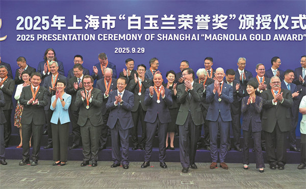 The Shanghai Municipal Government confers the 2025 Magnolia Gold Award on 28 foreign nationals and the Honorary Citizen of Shanghai on two expatriates on Sept 29. [Photo by Gao Erqiang/China Daily]