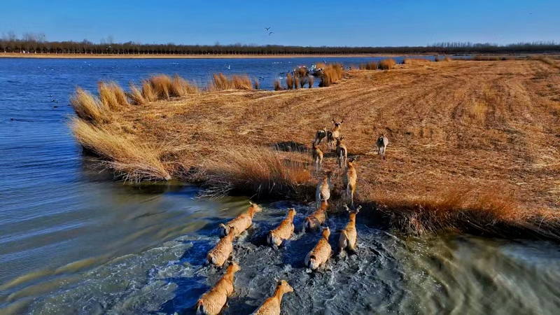 Research shows that Dafeng district in Yancheng is the birthplace of the milu deer, also known as Pere David's deer. In August 1986, 39 milu deer were returned to China from the United Kingdom, and a nature reserve was established to house them in wetlands along the Yellow Sea in Dafeng district of Yancheng, Jiangsu. Now, 39 years later, the local milu deer population has grown to 8,502, with more than 3,600 living in the wild, representing more than 60 percent of the global population.