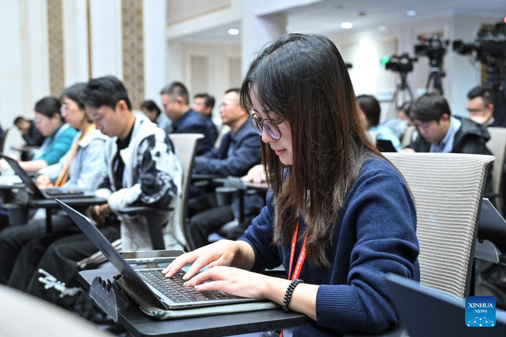 Journalists work at a press conference held by the State Council Information Office (SCIO) on achievements in high-quality housing and urban-rural development during the 14th Five-Year Plan period (2021-2025) in Beijing, capital of China, Oct. 11, 2025. (Xinhua/Li Xin)