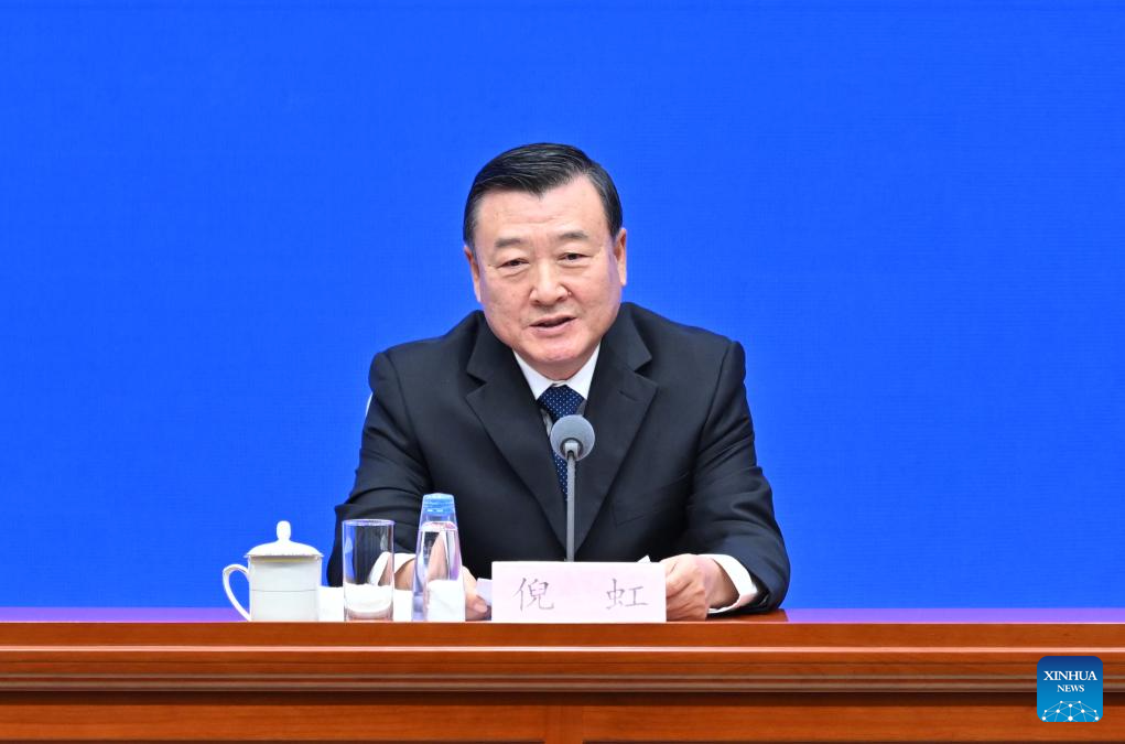 China's Minister of Housing and Urban-Rural Development Ni Hong attends a press conference held by the State Council Information Office (SCIO) on achievements in high-quality housing and urban-rural development during the 14th Five-Year Plan period (2021-2025) in Beijing, capital of China, Oct. 11, 2025. (Xinhua/Li Xin)