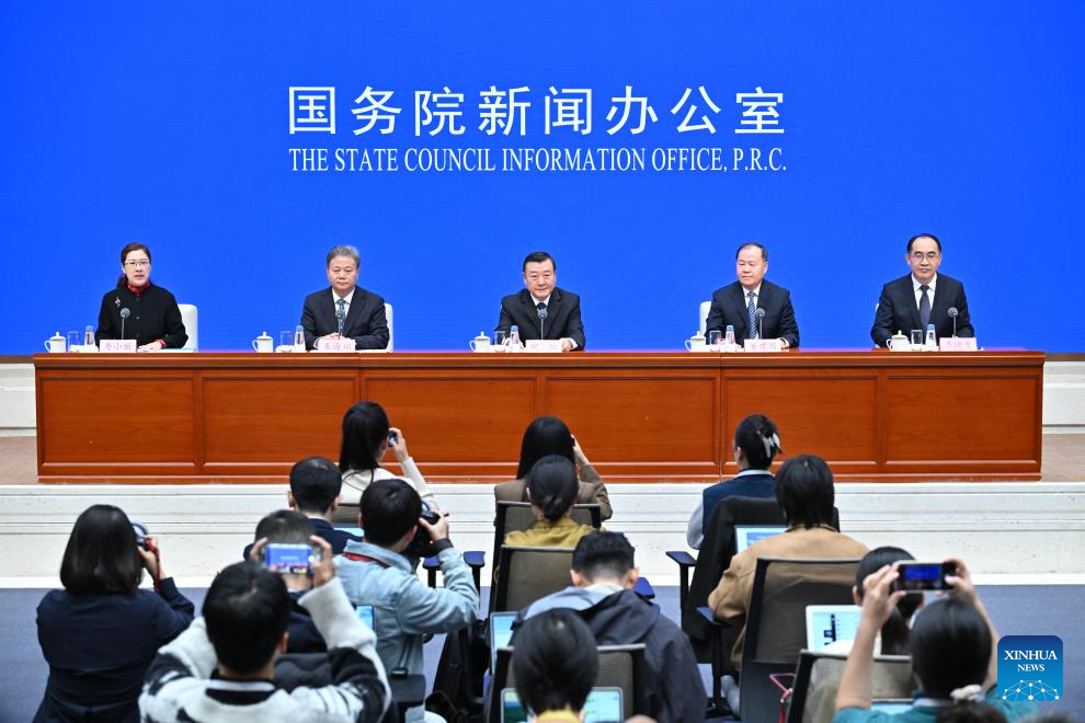 China's Minister of Housing and Urban-Rural Development Ni Hong (C) attends a press conference held by the State Council Information Office (SCIO) on achievements in high-quality housing and urban-rural development during the 14th Five-Year Plan period (2021-2025) in Beijing, capital of China, Oct. 11, 2025. (Xinhua/Li Xin)