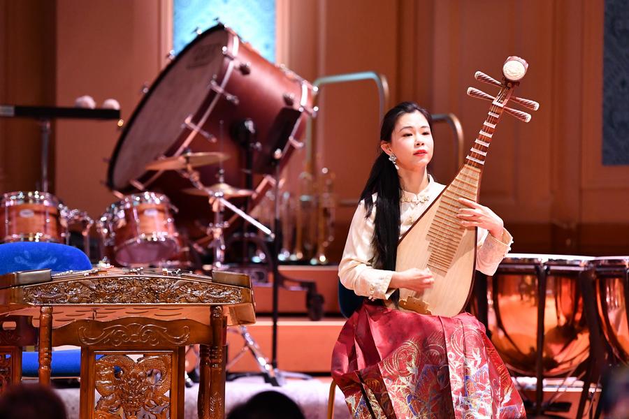 An artist performs during a Mid-Autumn Festival gala in Geneva, Switzerland, Sept. 23, 2025. The gala was held Tuesday evening here to celebrate the upcoming 76th anniversary of the founding of the People's Republic of China (PRC) and the Mid-Autumn Festival, which falls respectively on Oct. 1 and Oct. 6. (Xinhua/Lian Yi)
