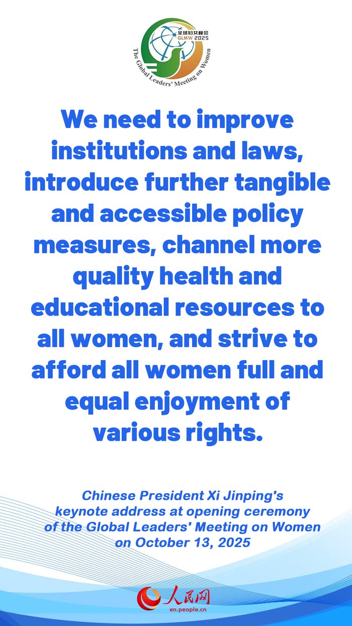 Highlights of Chinese President Xi Jinping's keynote address at opening ceremony of the Global Leaders' Meeting on Women (5)
