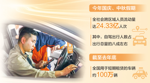 China's car rental market saw strong growth during the recent eight-day National Day and Mid-Autumn Festival holiday, fueled largely by the rising popularity of self-drive tours.