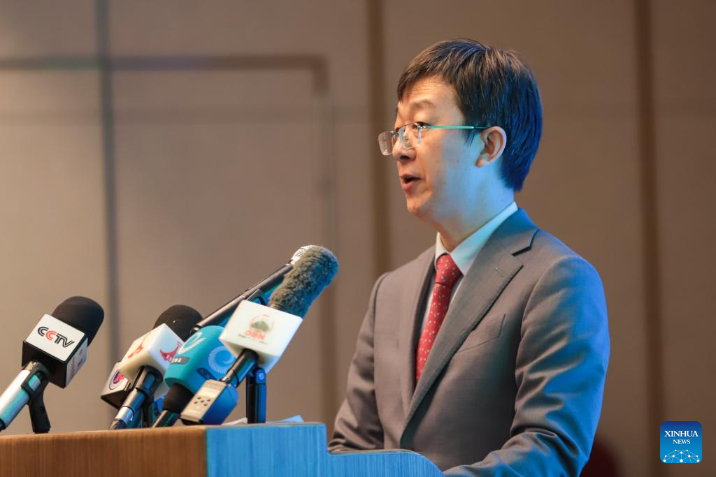 Jiang Feng, head of the Chinese Mission to the African Union, speaks at the 2025 General Assembly of the China-Africa Agricultural Science and Technology Innovation Alliance in Addis Ababa, Ethiopia's capital, on Oct. 27, 2025. The 2025 General Assembly of the China-Africa Agricultural Science and Technology Innovation Alliance (CAASTIA) kicked off on Monday in Addis Ababa, with a focus on cooperation for Africa's food security and agricultural modernization. (Photo by Michael Tewelde/Xinhua)