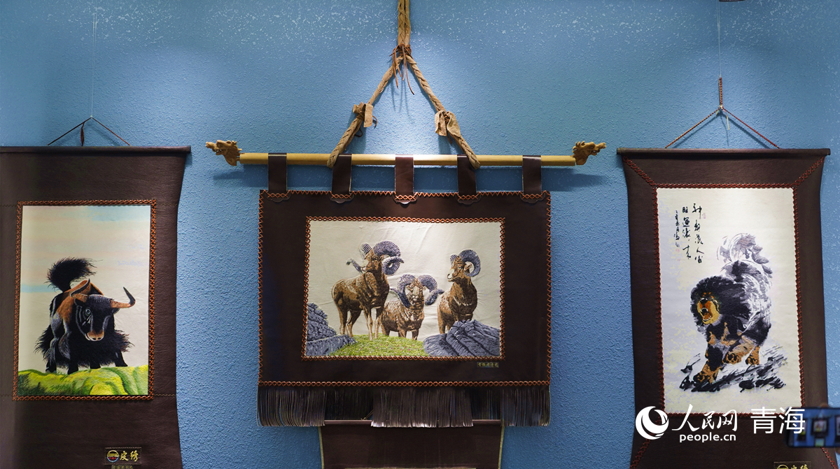 Photo shows Danga'er leather embroidery works on display in Huangyuan county, northwest China's Qinghai Province. (People's Daily Online/Yang Qihong)