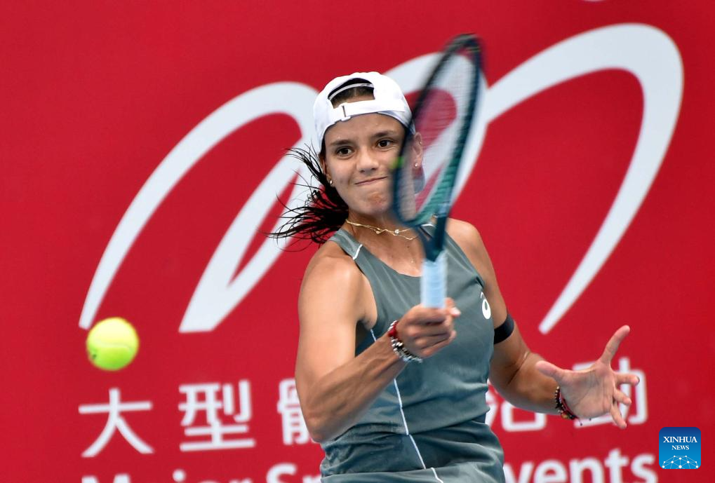 Emiliana Arango hits a return during the women's singles round of 16 match between Emiliana Arango of Colombia and Cristina Bucsa of Spain at the WTA Hong Kong Open tennis tournament in Hong Kong, China, Oct. 29, 2025. (Xinhua/Lo Ping Fai)