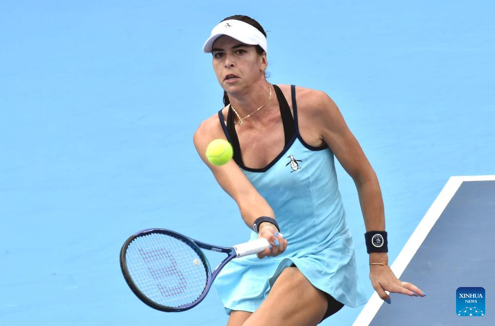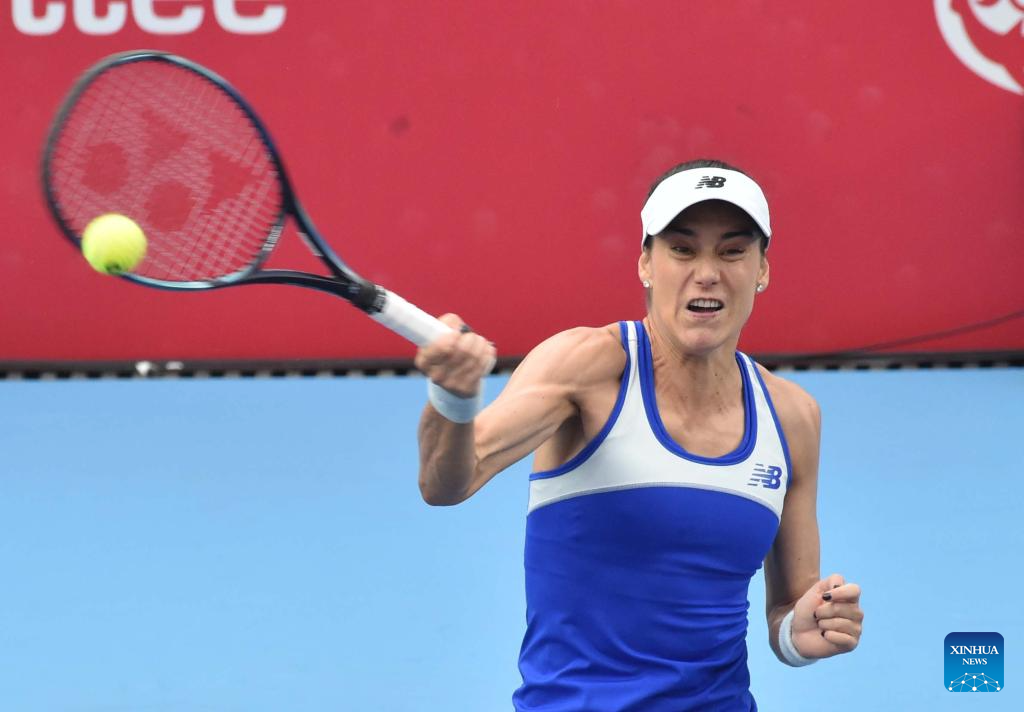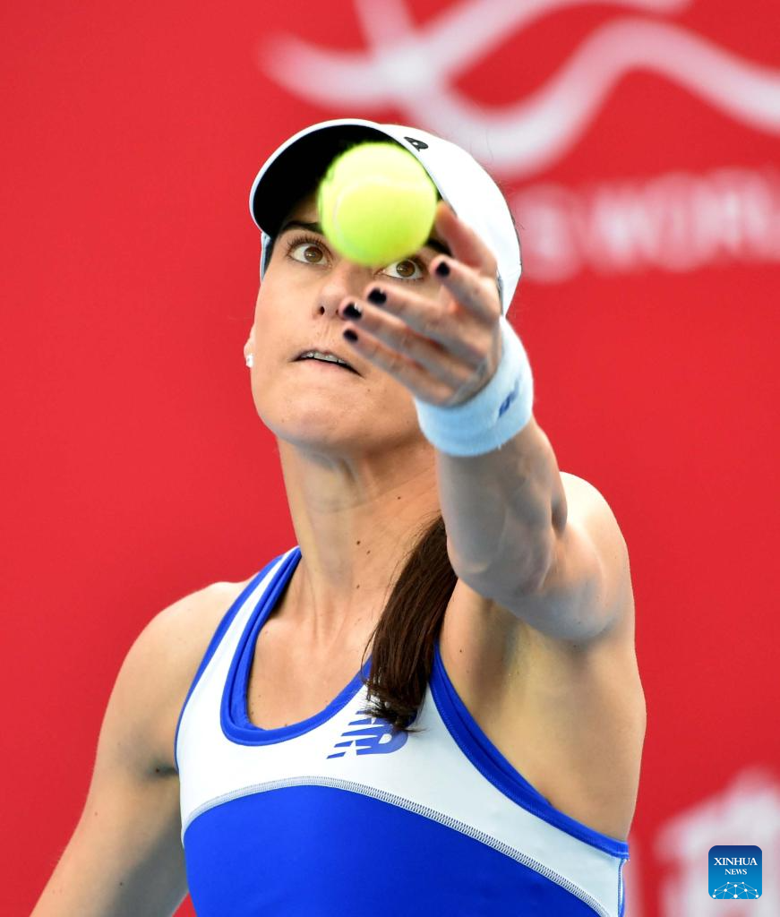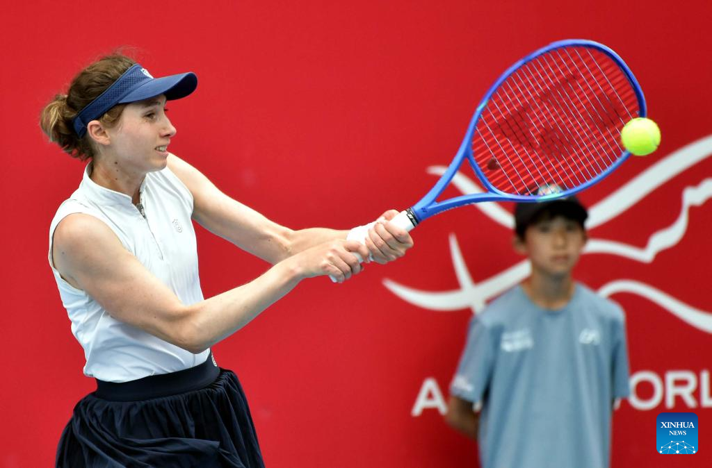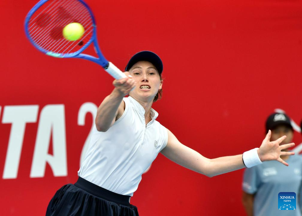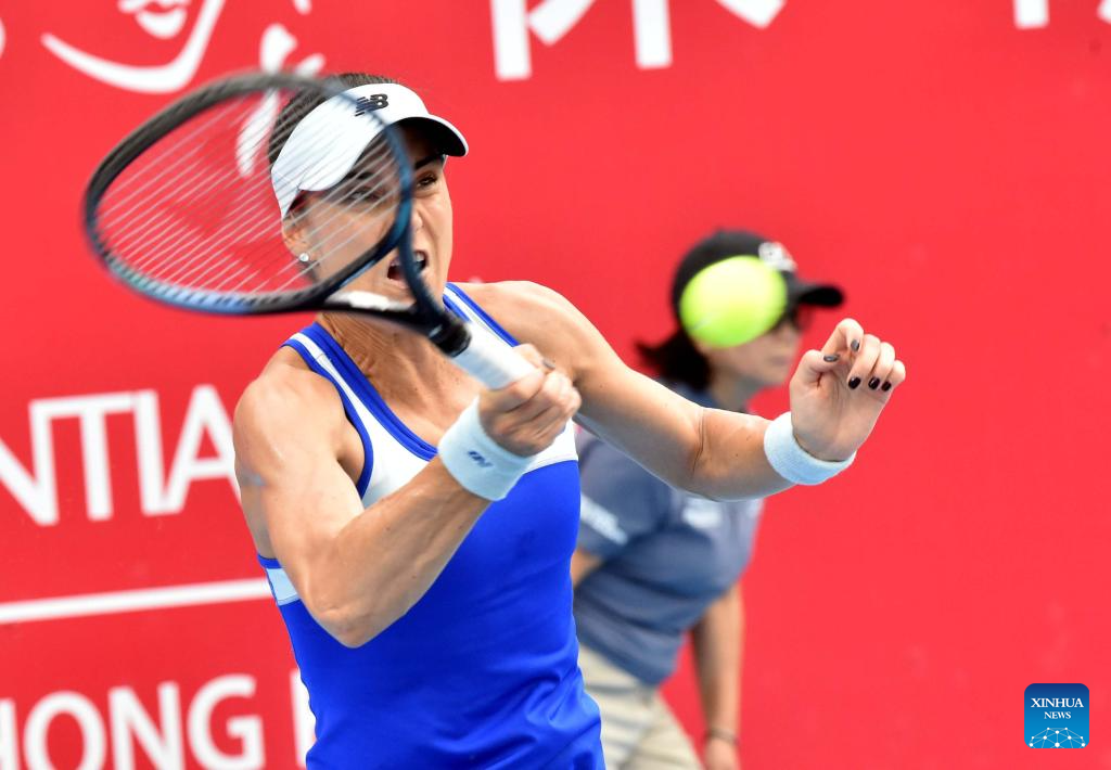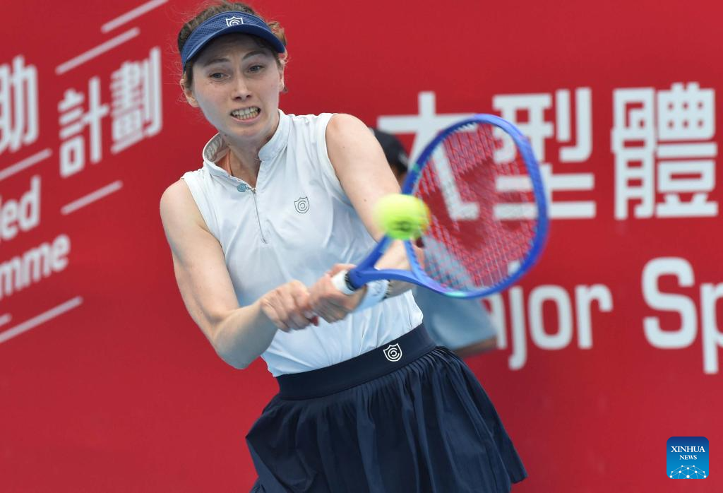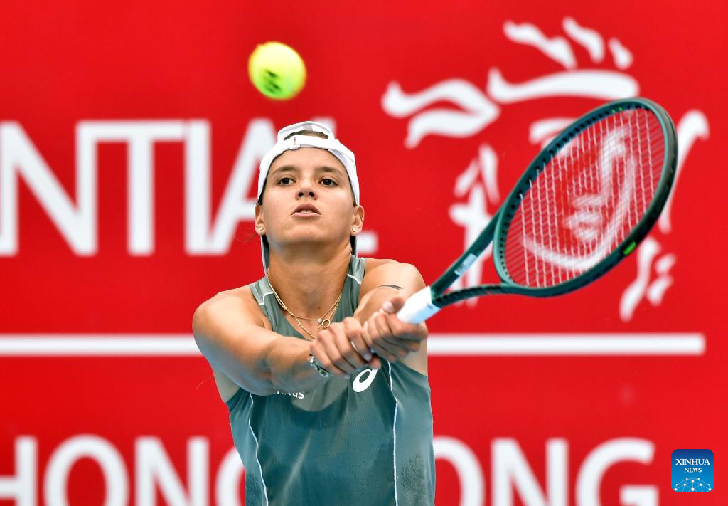 Ajla Tomljanovic hits a return during the women's singles round of 16 match between Sorana Cirstea of Romania and Ajla Tomljanovic of Australia at the WTA Hong Kong Open tennis tournament in Hong Kong, China, Oct. 29, 2025. (Xinhua/Lo Ping Fai)
