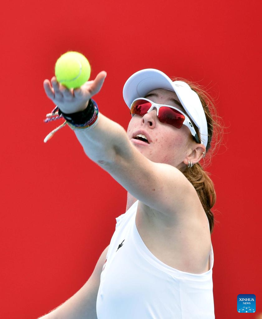 Maya Joint serves during the women's singles round of 16 match between Maya Joint of Australia and Viktoria Morvayova of Slovakia at the WTA Hong Kong Open tennis tournament in Hong Kong, China, Oct. 29, 2025. (Xinhua/Lo Ping Fai)