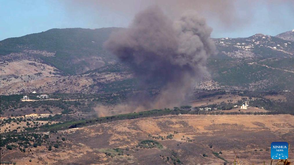 This photo taken on Oct. 30, 2025 shows smoke rising following Israeli airstrikes targeting the outskirts of Nabatieh in southern Lebanon. (Photo by Taher Abu Hamdan/Xinhua)