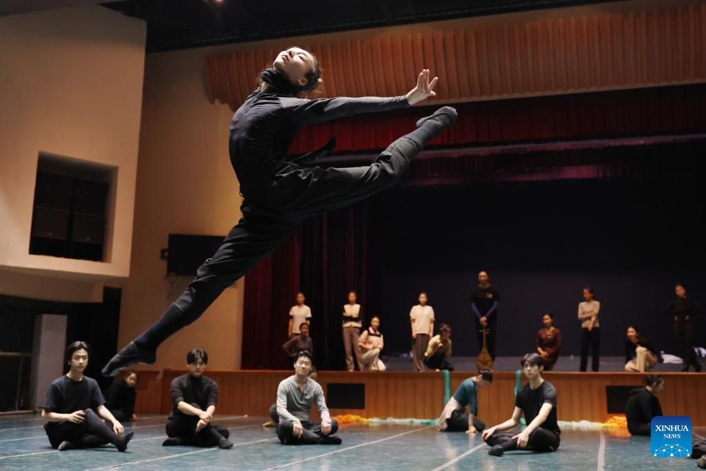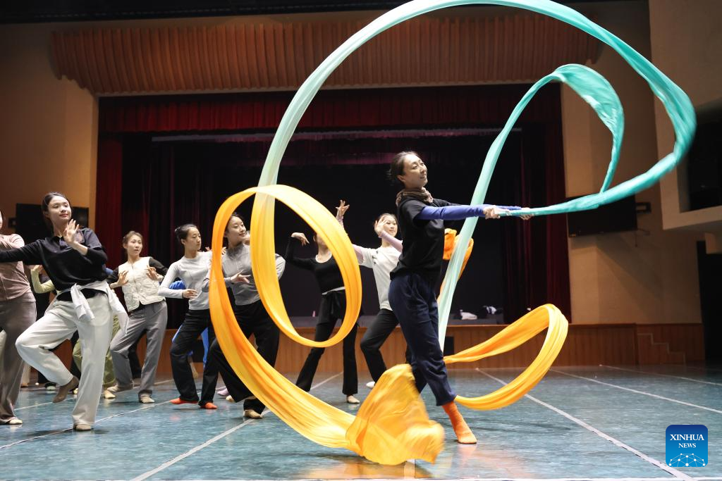 Dancers rehearse the dance drama "Flower Rains Along Silk Road" in Lanzhou, northwest China's Gansu Province, Nov. 3, 2025. (Xinhua/Chen Bin)