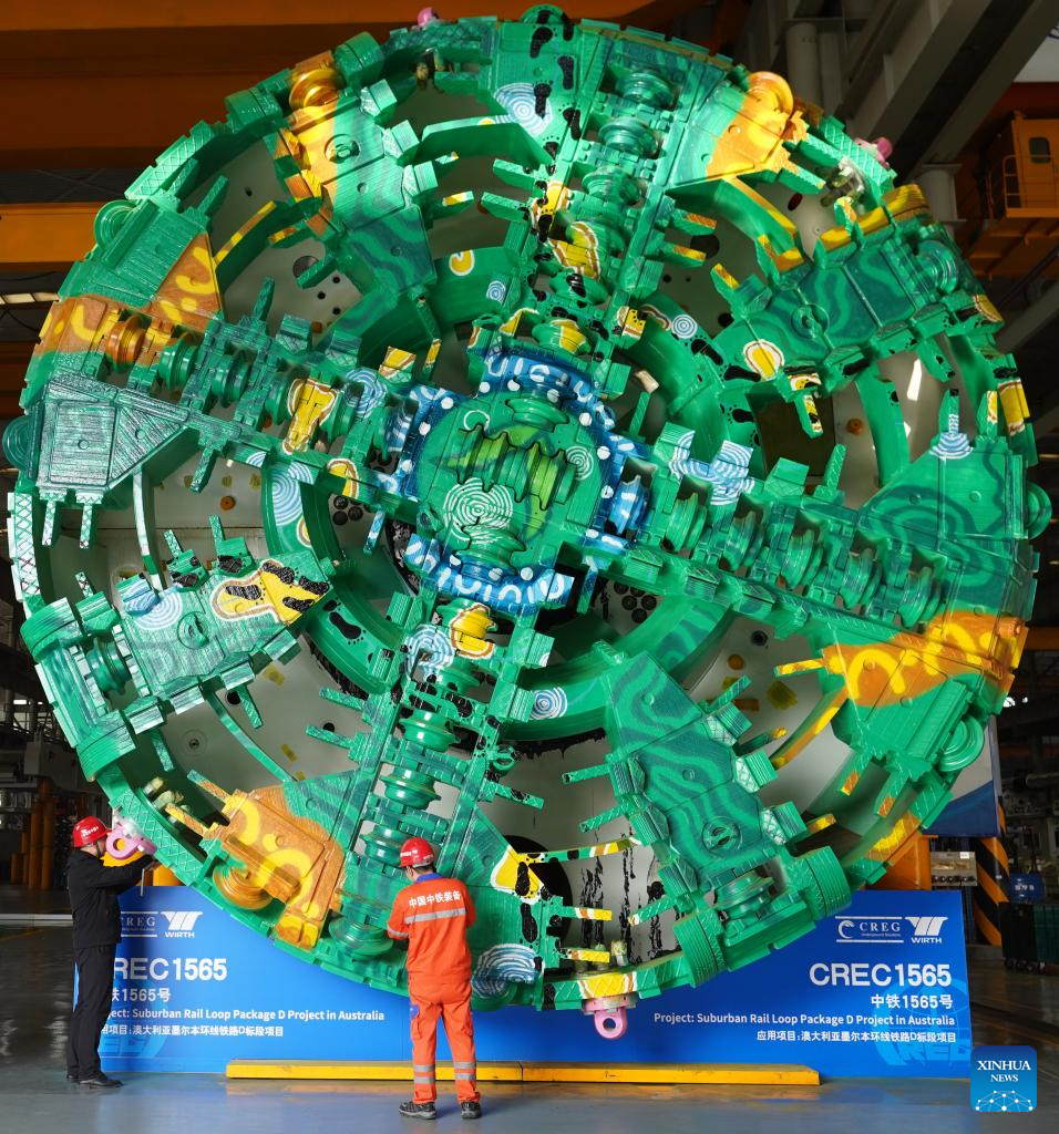 Employees test the components of a tunnel boring machine at a workshop of China Railway Engineering Equipment Group Co., Ltd. in Zhengzhou, central China's Henan Province, Nov. 3, 2025. As an important industrial base in central China, Henan Province has actively promoted the high-quality development of its manufacturing sector through scientific and technological innovation and industrial upgrading. (Xinhua/Dai Mingxuan)