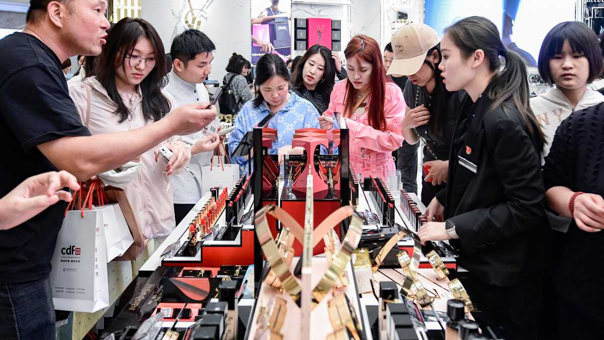 Customers select goods at the CDF Haikou International Duty-Free City in Haikou, Hainan province, on Feb 3. SU BIKUN/FOR CHINA DAILY
