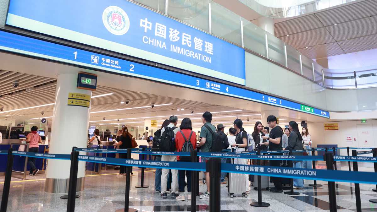 Inbound travelers are processed at the Haikou Meilan immigration checkpoint with the assistance of border inspection officers. PROVIDED TO CHINA DAILY
