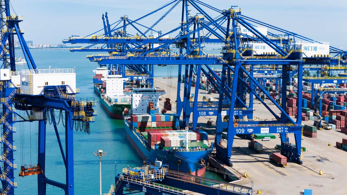 Container ships are loaded and unloaded at the Haikou Xiuying Port. PROVIDED TO CHINA DAILY