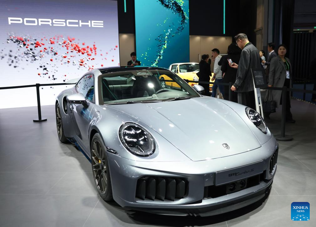 The 911 Turbo S of Porsche, which made its debut in Asia, is displayed at the Automobile and Smart Mobility exhibition area during the 8th China International Import Expo (CIIE) in east China's Shanghai, Nov. 6, 2025. Many exhibitors debuted their latest products at the 8th CIIE in Shanghai. (Xinhua/Meng Chenguang)