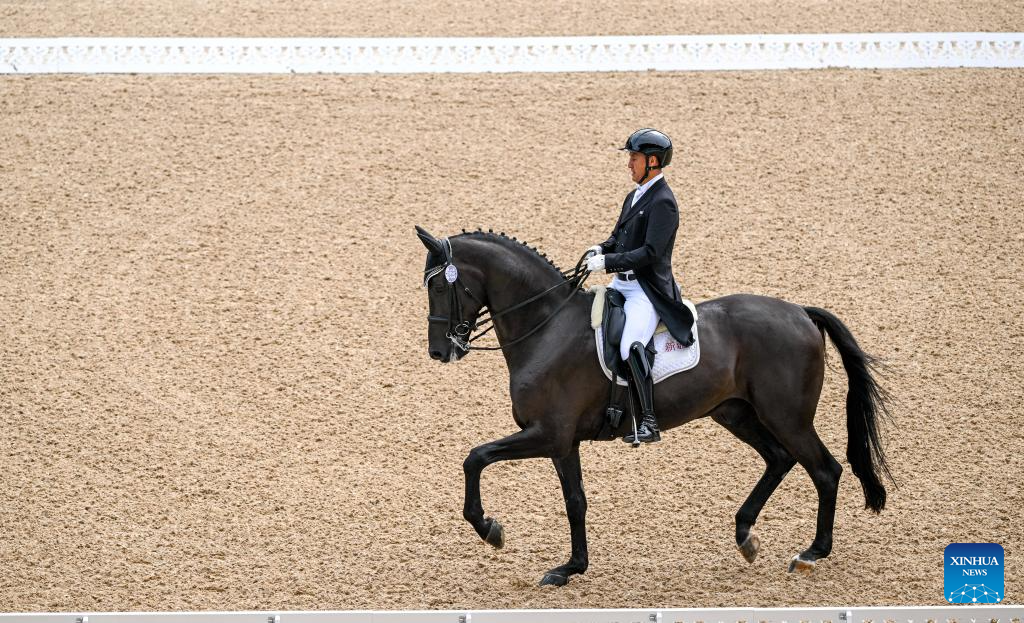 Liu Tao of Xinjiang competes during the equestrian dressage team final at China's 15th National Games in Shenzhen, south China's Guangdong Province, Nov. 10, 2025. (Xinhua/Lian Zhen)