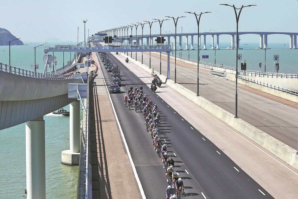 Han Feng, deputy secretary-general of the Chinese Cycling Association, said racing on the bridge — which spans 55 km and is among the world's longest cross-sea bridges — was a bold and challenging concept.