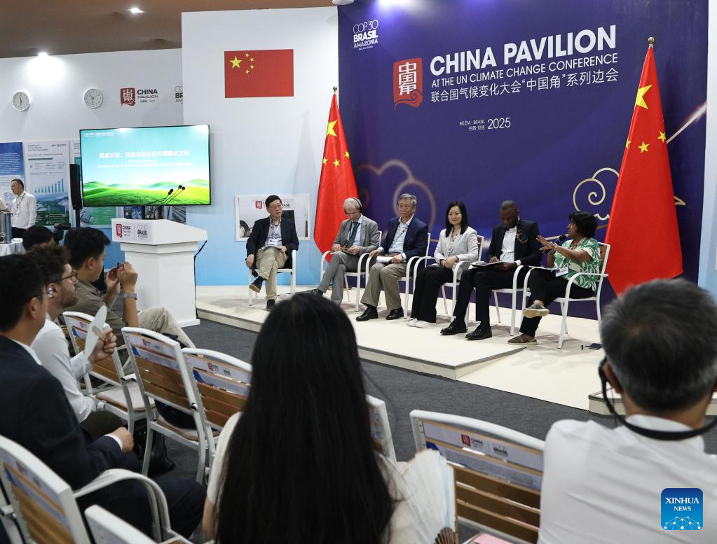 A session focusing on ecological civilization and the practice of building a "Beautiful China" is held during the 30th UN Climate Change Conference (COP30) in Belem, Brazil, Nov. 10, 2025. On Monday, the "China Pavilion" series of the COP30 side events kicked off in Belem, with the first session focusing on ecological civilization and the practice of building a "Beautiful China."