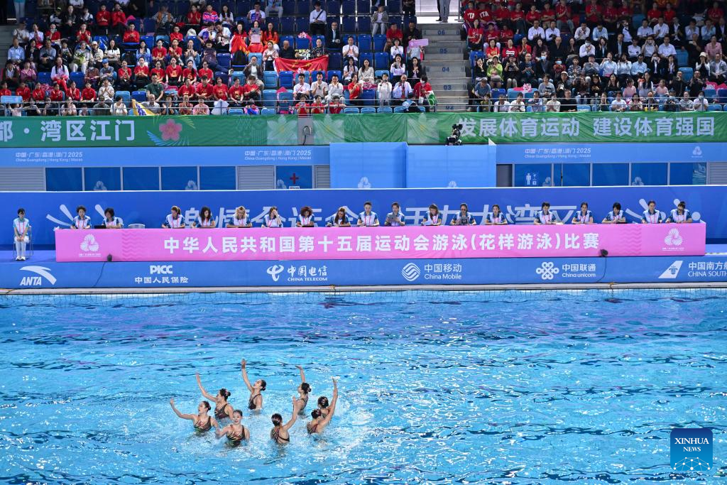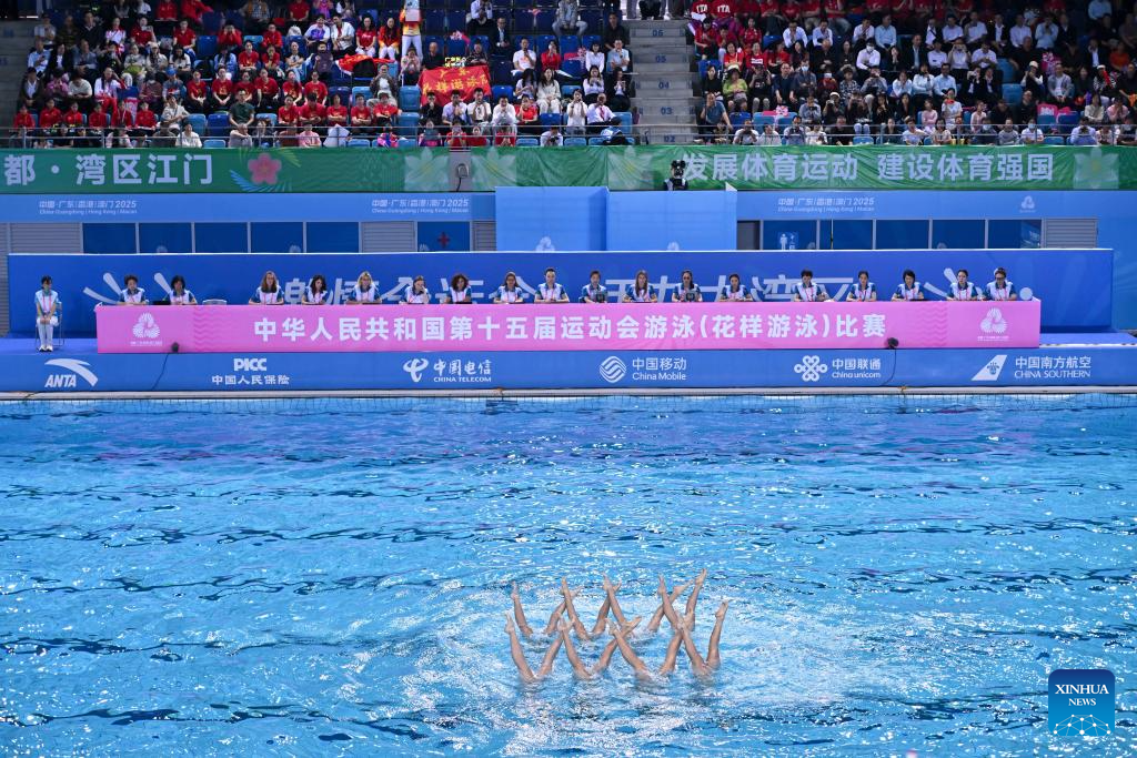 Team Sichuan perform during the team technical of artistic swimming at China's 15th National Games in Jiangmen, south China's Guangdong Province, Nov. 13, 2025. (Xinhua/Li Xin)