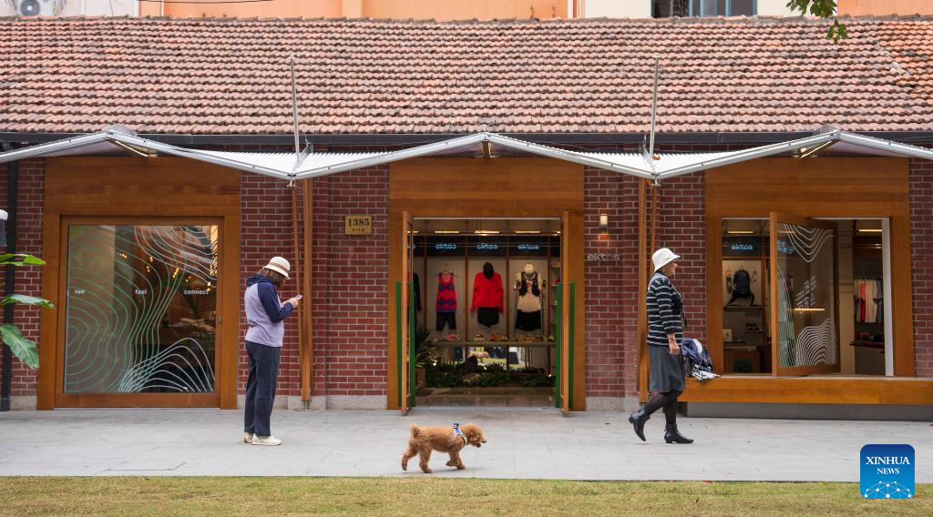 Pedestrians are pictured outside a store at the Yuyuan Road Historical and Cultural Block in east China's Shanghai, Nov. 12, 2025. (Xinhua/Cai Yang)