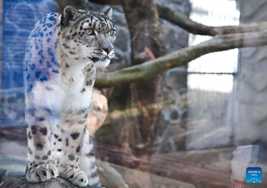 A snow leopard is seen at Xining Wildlife Park in northwest China's Qinghai Province, Nov. 15, 2025. The leopard house at Xining Wildlife Park reopened to the public after a month-long renovation. (Xinhua/Qi Zhiyue)
