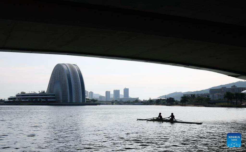 Trainees exercise rowing on the Tianmu River in Hengqin, south China's Guangdong Province, Nov. 1, 2025. (Xinhua/Hu Xingyu)