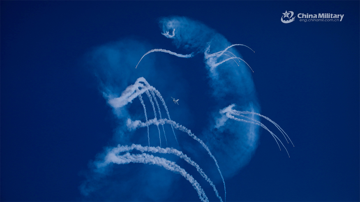 A J-11BS fighter jet attached to a regiment under the Chinese PLA Naval Aviation University releases flares during a combat training exercise. (eng.chinamil.com.cn/Photo by Zhang Zhiguang)