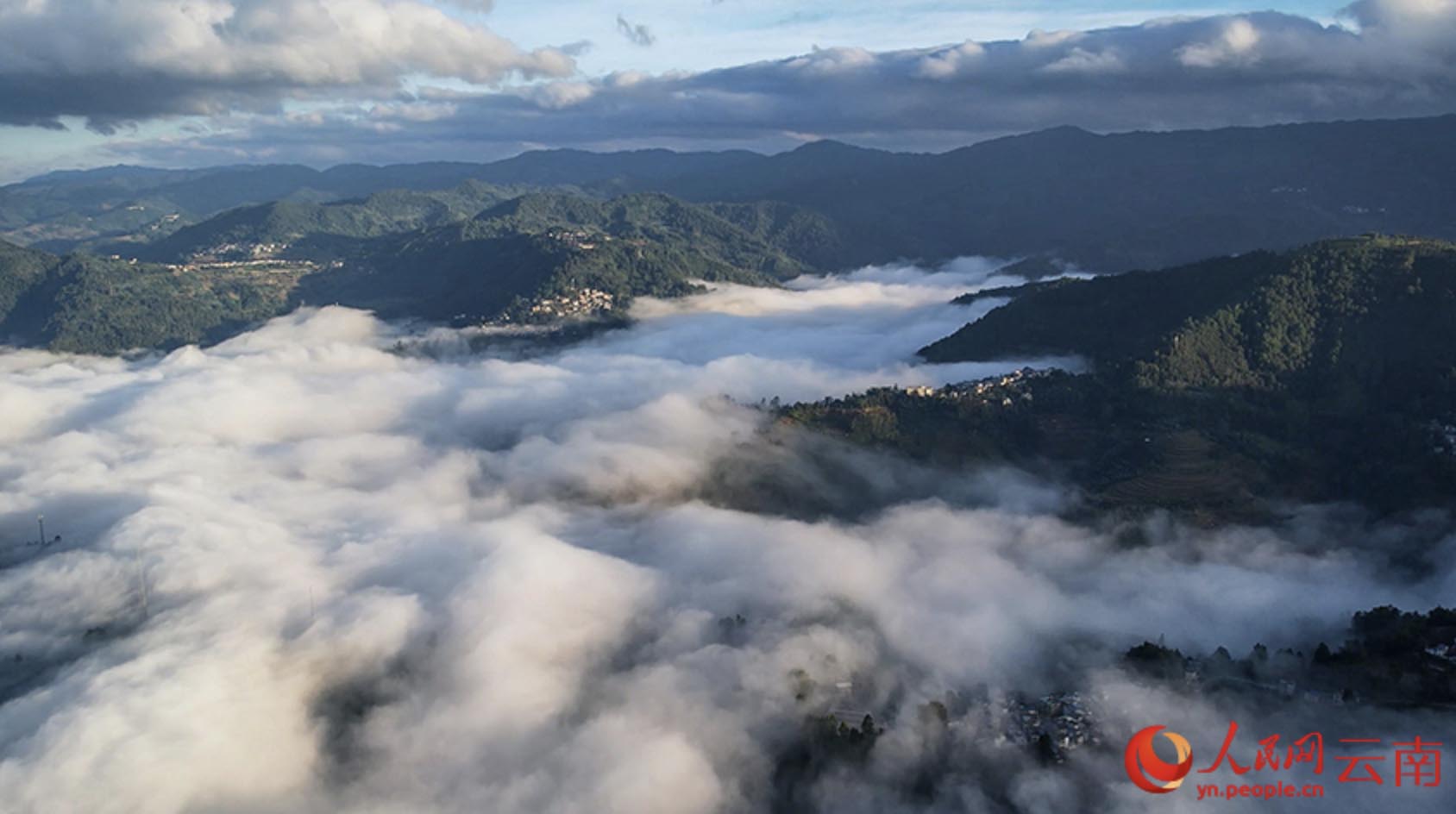 On an autumn morning in Lyuchun county, Honghe Hani and Yi Autonomous Prefecture, southwest China's Yunnan Province, a sea of clouds surges between the peaks, transforming them into floating islands. The mist ebbs and flows, cloaking this border town in the aura of a dreamy "sky city."