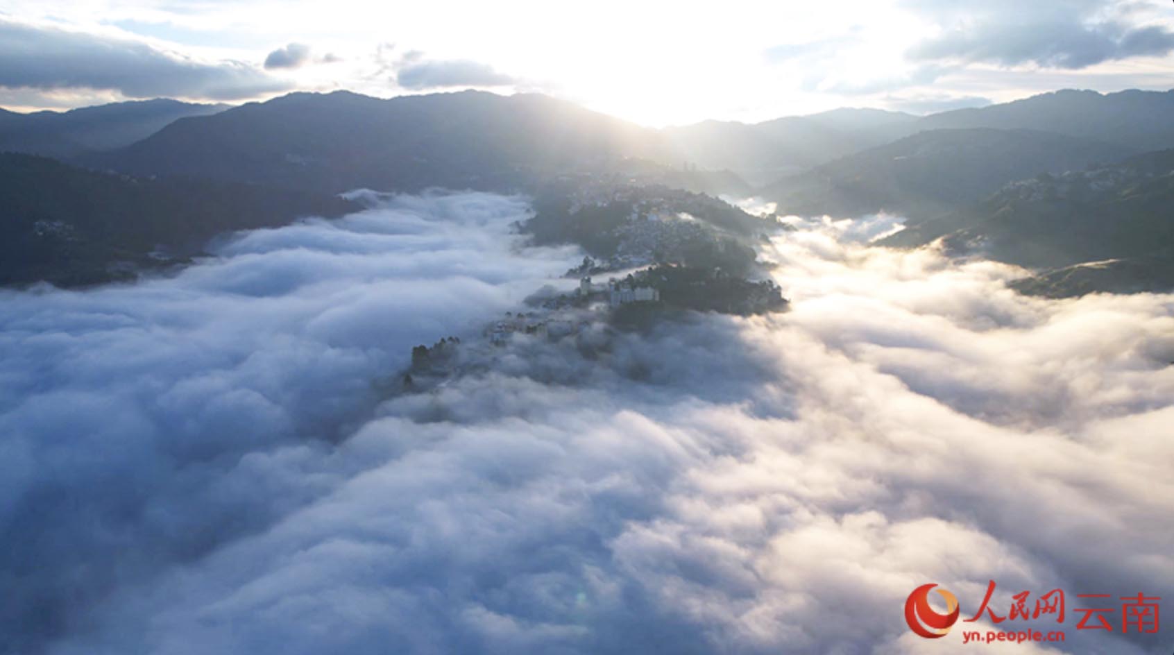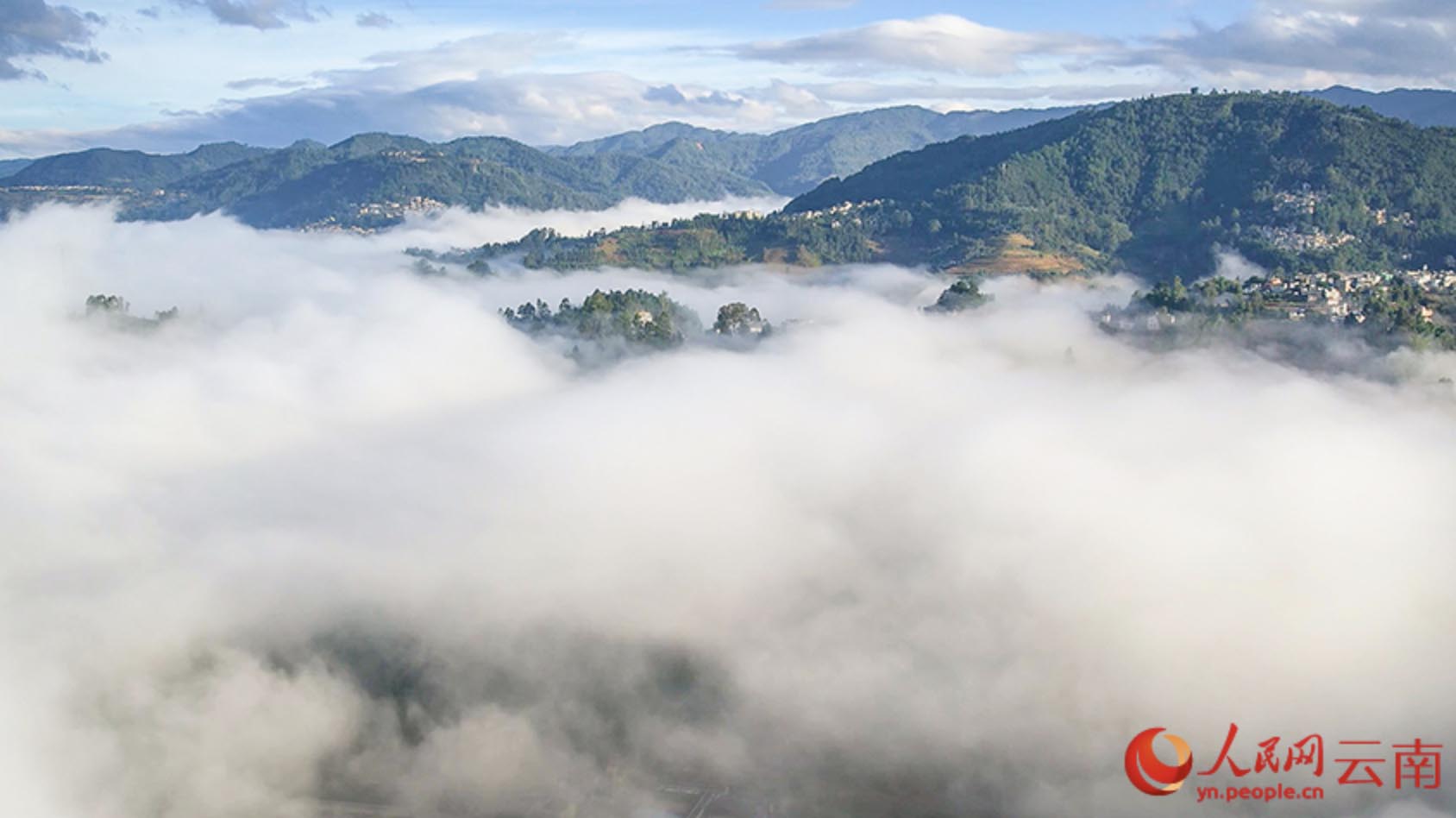 Photo shows snow-white mist drifting across the mountains in Lyuchun county, Honghe Hani and Yi Autonomous Prefecture, southwest China's Yunnan Province. (Photo/Lu Yutang)