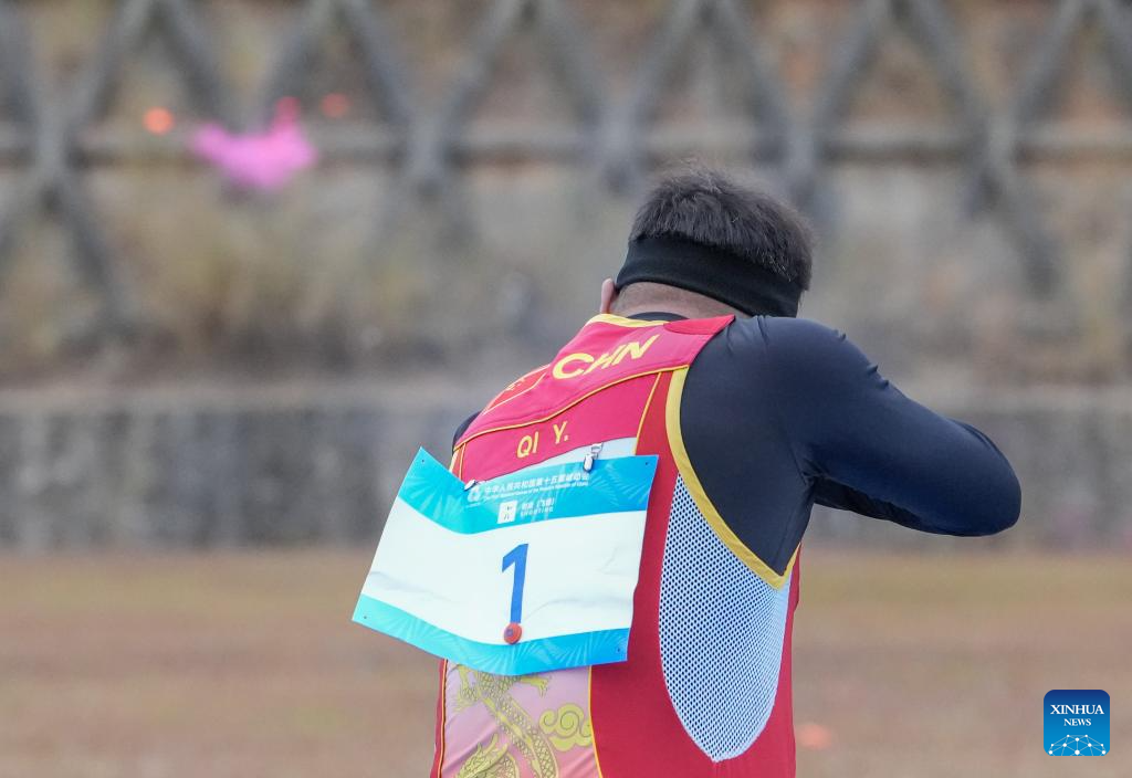 Qi Ying of Shandong competes during the trap men's final of shooting at China's 15th National Games in Guangzhou, south China's Guangdong Province, Nov. 19, 2025. (Xinhua/Xiao Ennan)