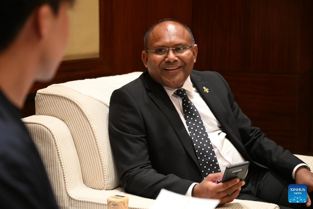 Maldivian Minister of State for Tourism and Environment Abdulla Niyaz speaks during an interview with Xinhua in Wenzhou, east China's Zhejiang Province, Nov. 19, 2025. (Xinhua/Liu Mingxiang)