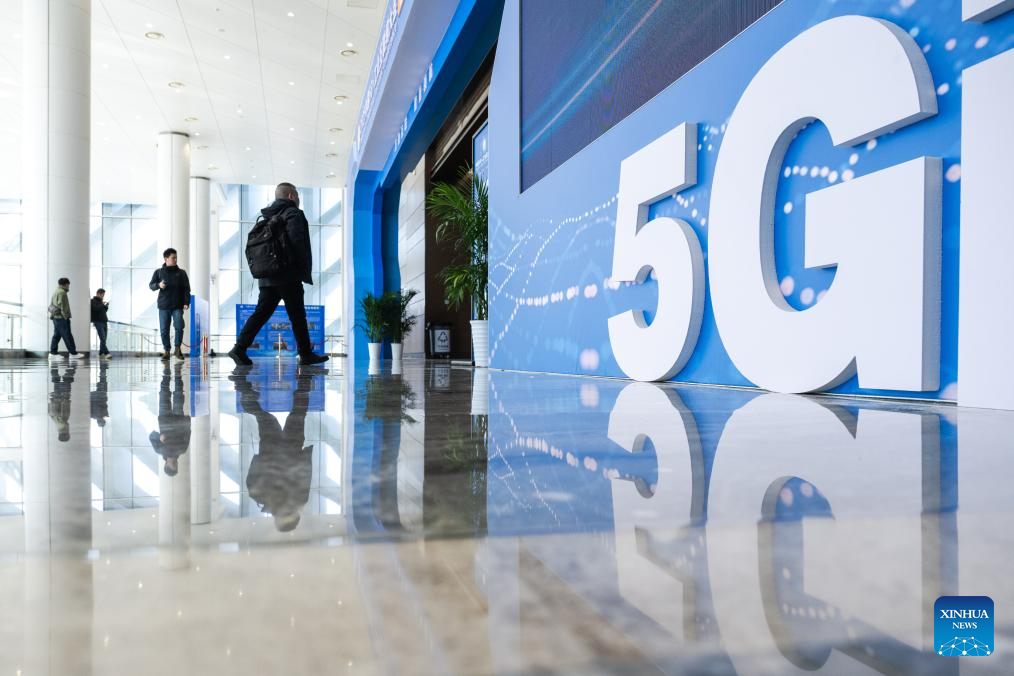 People visit an exhibition hall during the 2025 China 5G + Industrial Internet Conference in Wuhan, central China's Hubei Province, Nov. 21, 2025. The conference kicked off here on Friday and will run through Sunday. (Xinhua/Xiao Yijiu)