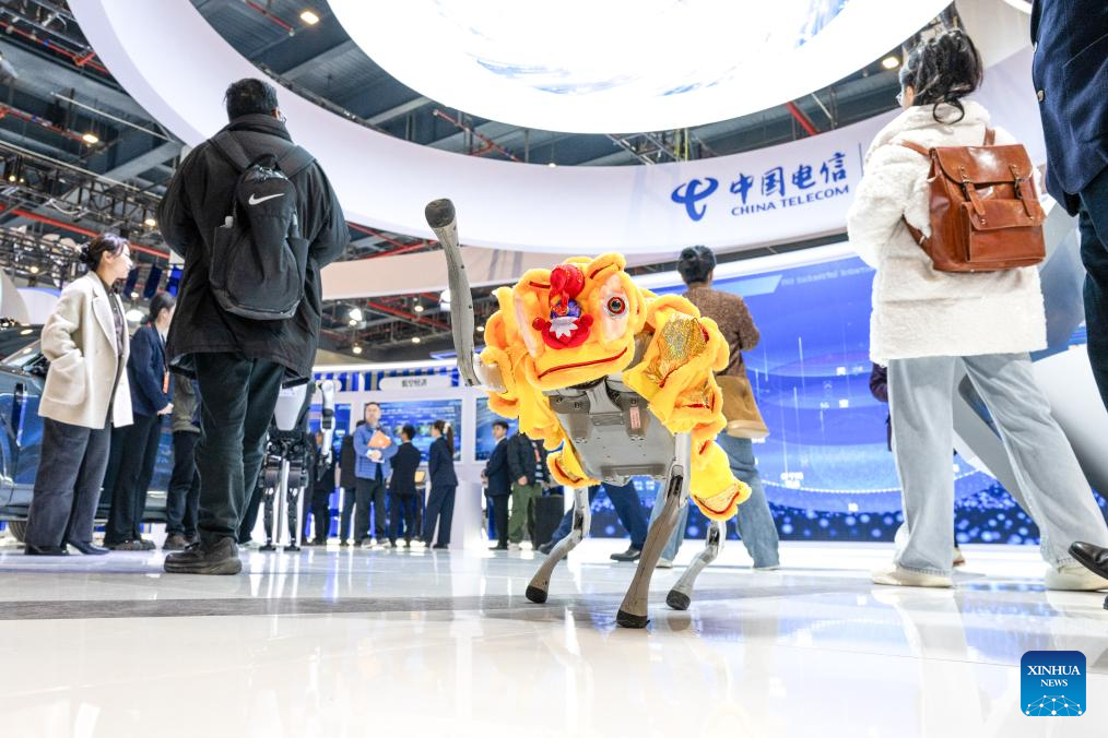 A robotic dog for on-site survey is seen during the 2025 China 5G + Industrial Internet Conference in Wuhan, central China's Hubei Province, Nov. 21, 2025. The conference kicked off here on Friday and will run through Sunday. (Xinhua/Du Zixuan)