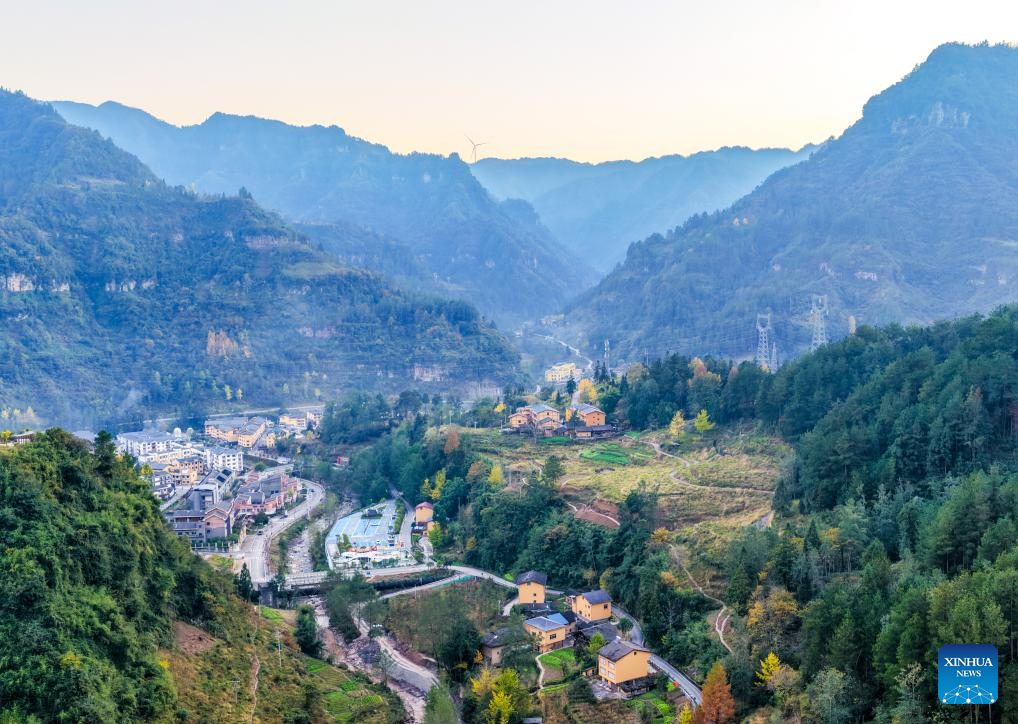 An aerial drone photo taken on Nov. 22, 2025 shows a view in Zhongyi Township, Shizhu County, southwest China's Chongqing. (Xinhua/Tang Yi)