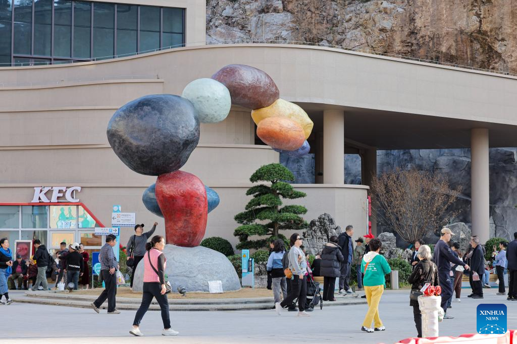 Tourists have fun at the Yundu service area of the Huajiang Grand Canyon Bridge in southwest China's Guizhou Province, Nov. 6, 2025. The Huajiang Grand Canyon Bridge, soaring 625 meters above the Beipan River in Guizhou's mountainous terrain, is the world's highest bridge. The nearby Yundu service area features a comprehensive complex that integrates bridge viewing, sports experiences and other tourism services. (Xinhua/Ou Dongqu)